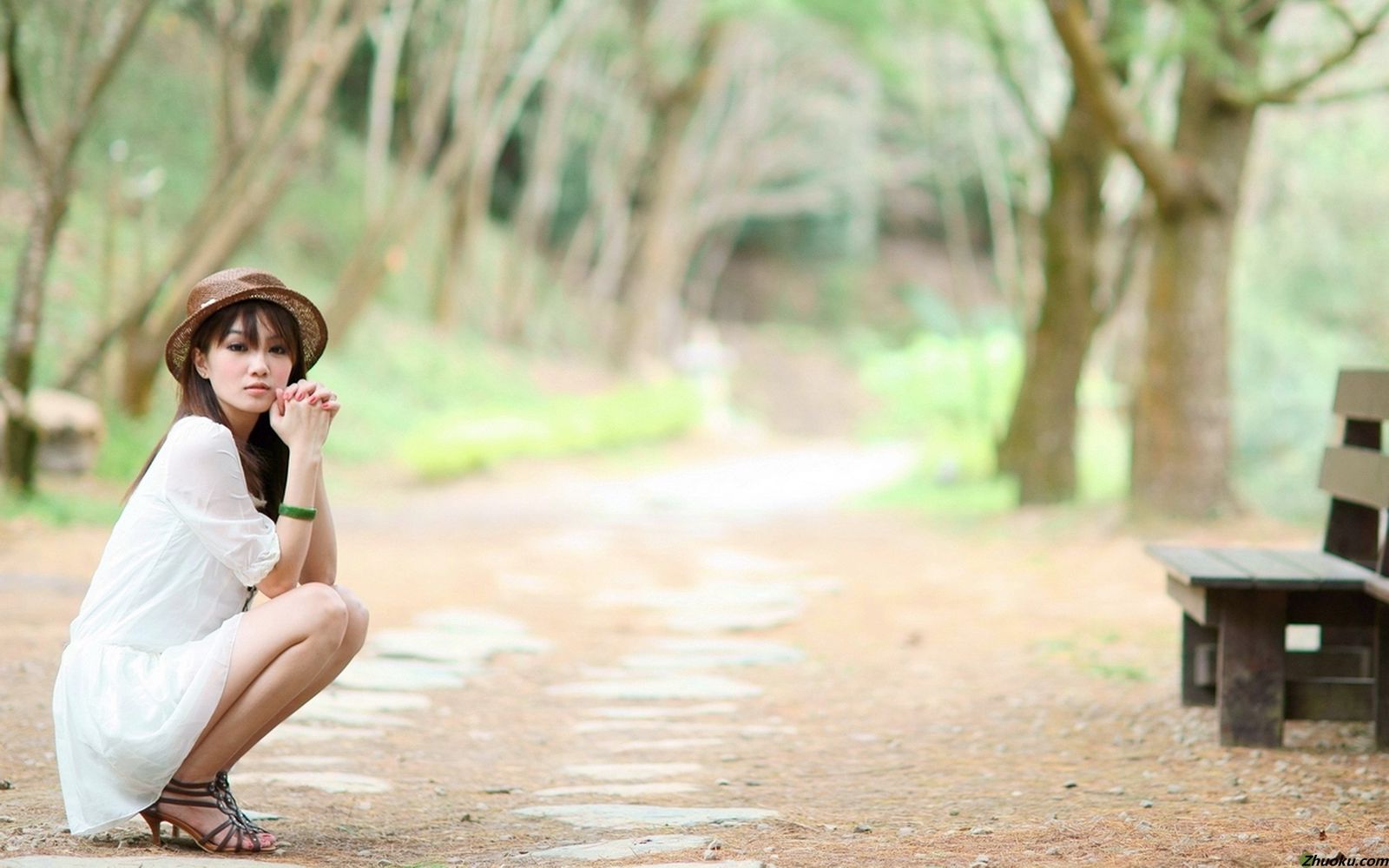齐肩的秀发拨至耳后,一双雪白笔直的双腿,让她的比例显得修长。