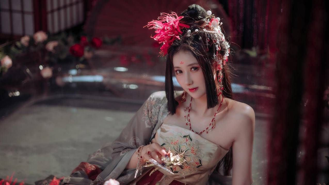 师杭望着铜镜中那张姣好面容,眨眼间,几乎快要落泪。她深吸一口气,将头上簪好的珠花与钗环都去了,只留一条红罗发带,然后绾了个再简单不过的螺髻。