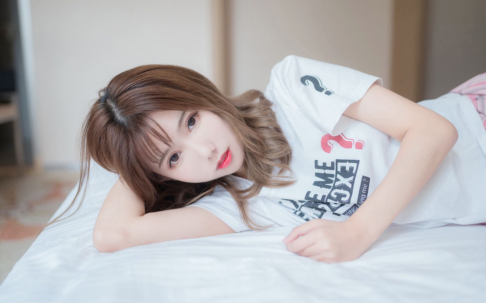 “起床了没呀,我要开门进来了哦。”