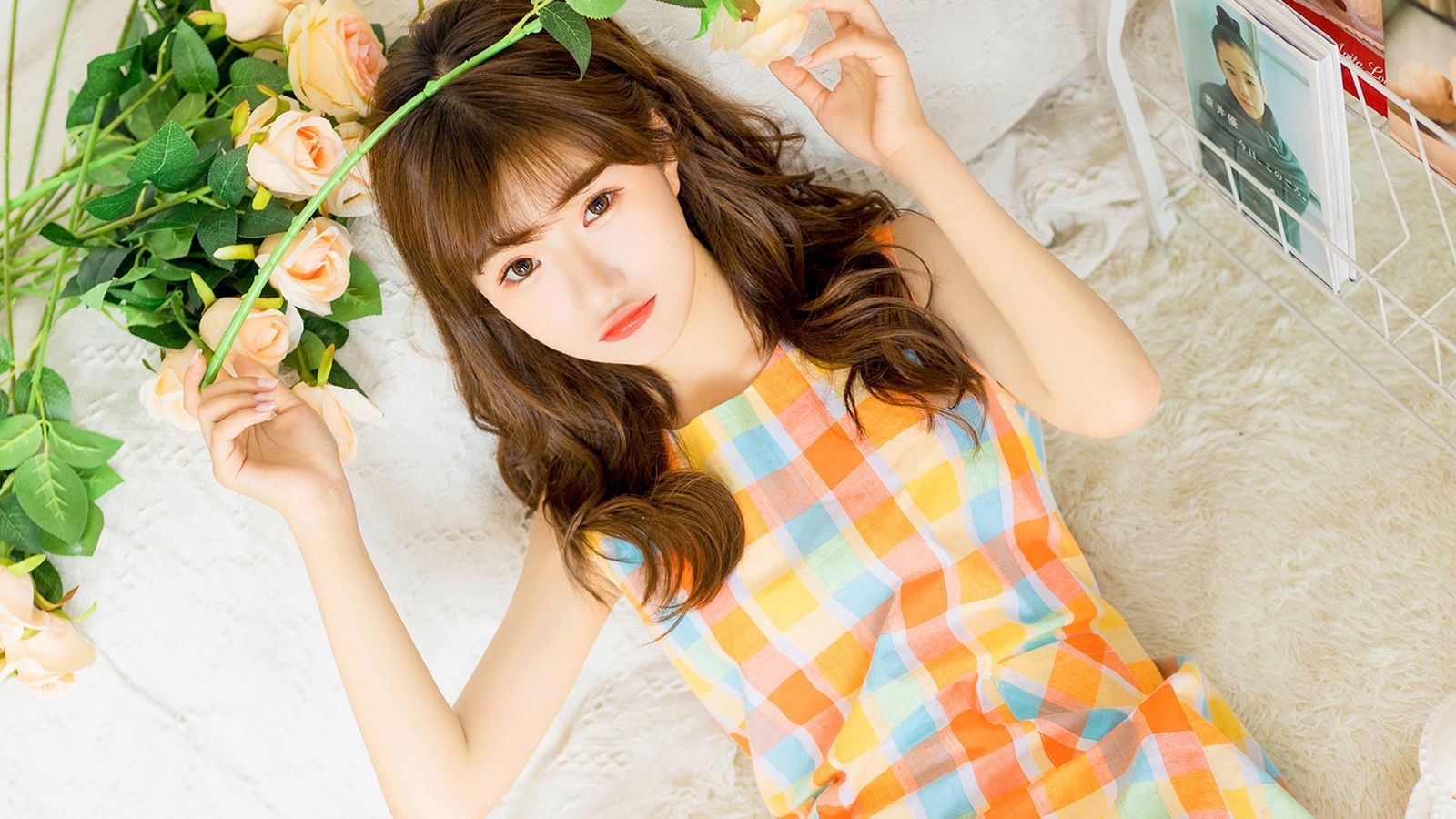目光下移,略过盈盈一握的小巧鸽乳和纤细腰肢,青色的格裙之下,是一对包裹着白色天鹅绒裤袜的修长玉腿,丝袜紧紧地贴着她的肌肤,使得她的腿部线条显得更加修长和纤细。白色的丝袜与她的肤色相映成趣,为她增添了一份清纯和优雅。