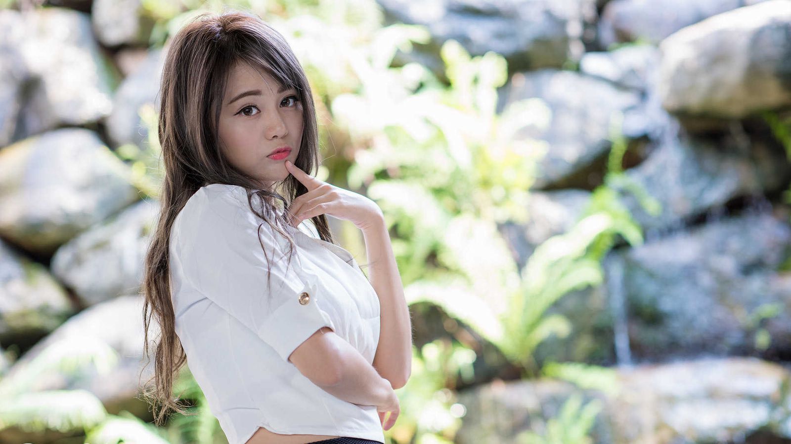 小青站在一棵大树下,摆出诱惑的姿势:双腿微分,臀部高翘,一手撩起皮带,露出硬挺的乳头。宅男们围成一圈,疯狂拍照,有人要求:「小姐姐,转个身,让我们看看后面!」小青顺从地转身,丁字裤的细带陷入臀缝,肛塞的宝石闪闪发光。他低声说:「这样……可以吗?」一个宅男大胆上前,手指故意按了一下肛塞,推得更深,小青尖叫一声:「啊啊……别、别碰那里……」