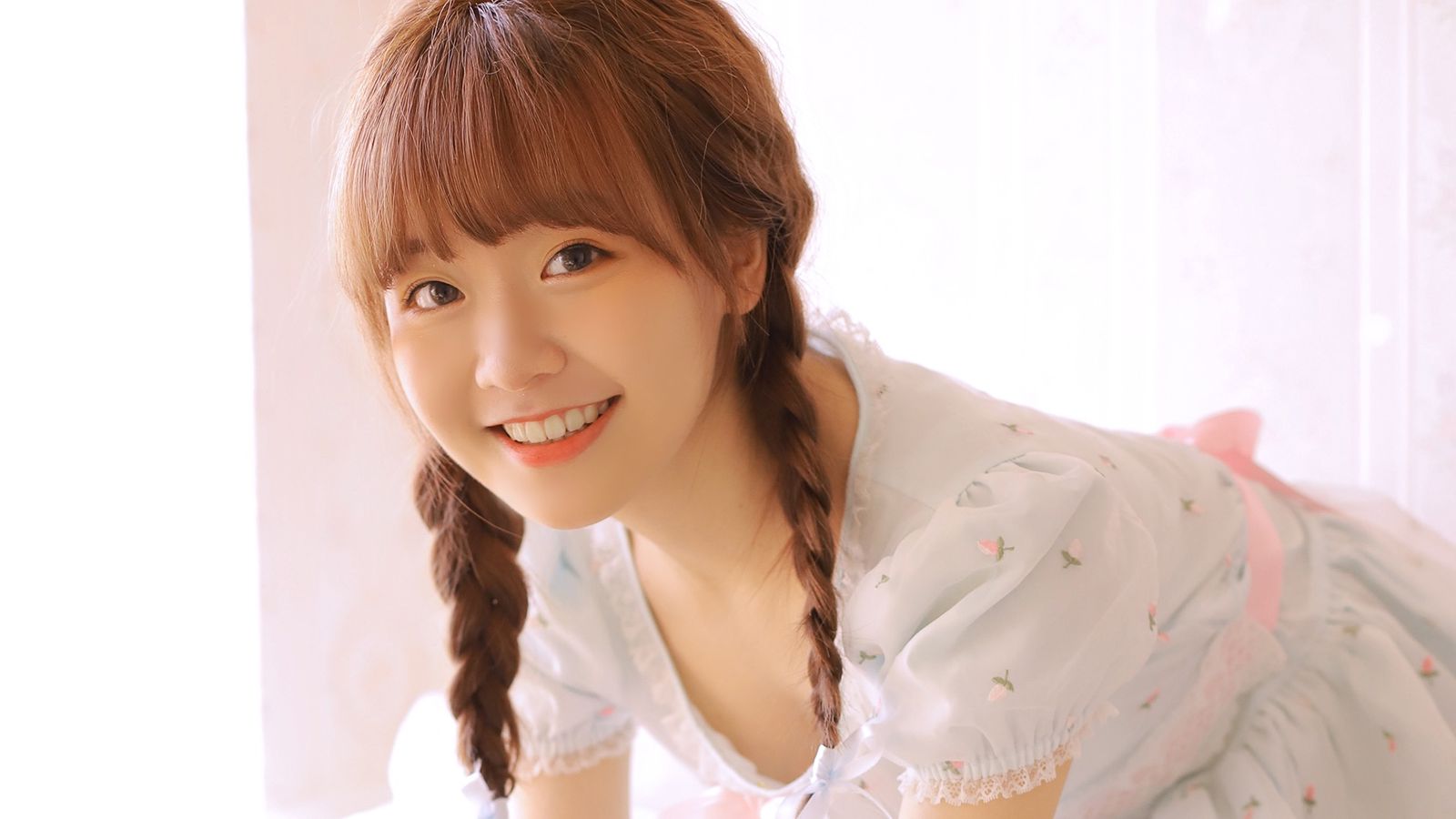 她的肌肤发著光,连眼神都染上点慵懒的色气。