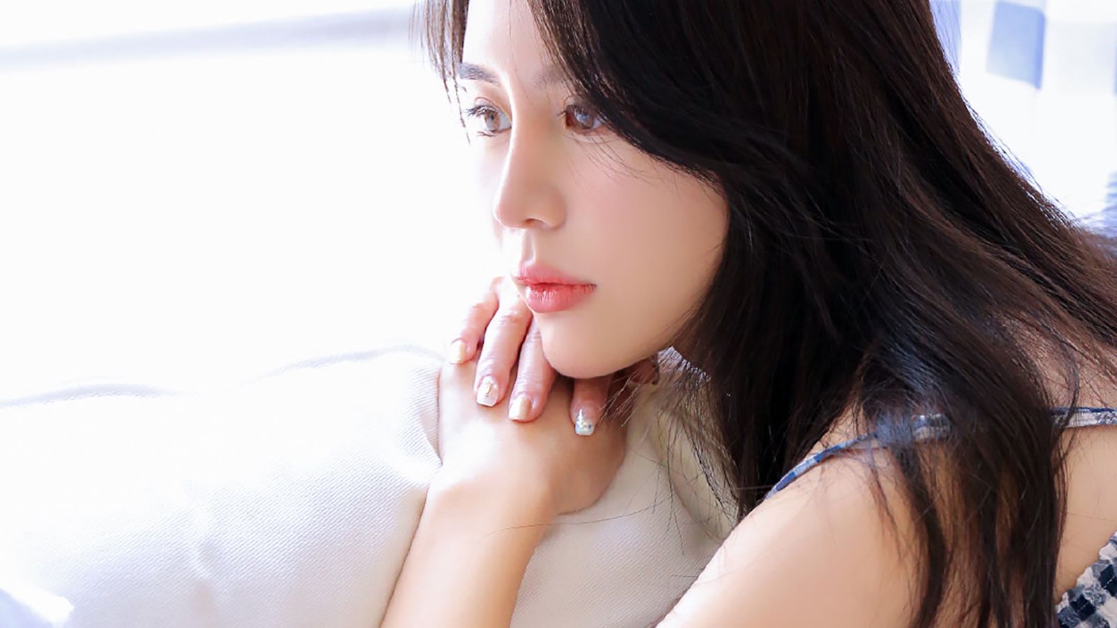 鹅蛋脸,白衣长裙,薄肩美背,脸上没有任何一点的瑕疵,宛如玉盘一般皎洁。