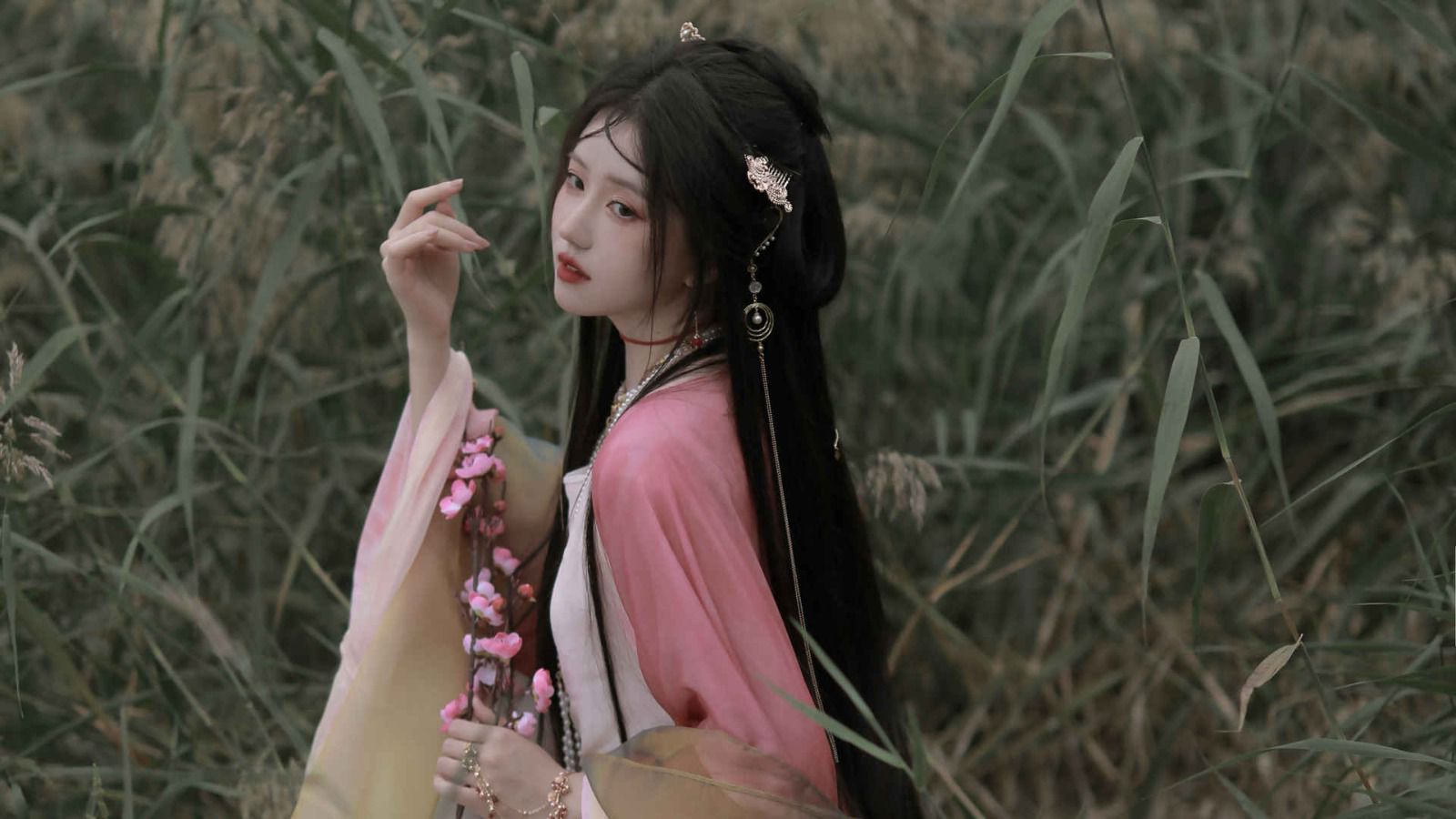 花漓走到门口,风吹起了她颈后的长发和红裙的领口。