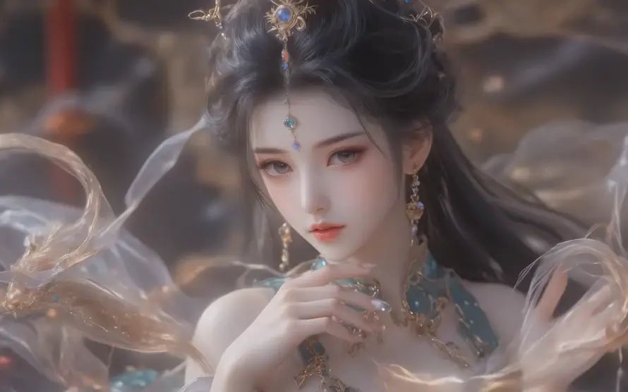岁月在她身上似乎停滞了,只沉淀下愈发迷人的风韵。凝脂般的肌肤在晨光下流转着柔润光泽,清冷如霜的玉容上,一双含情秋眸水光潋滟,眼波流转间,一丝若有若无的魅惑悄然流淌。最是那唇畔一点浅色美人痣,随着她轻抿樱唇的动作若隐若现,平添了万千撩人风情。高挽的云髻玉簪衬出成熟端庄,几缕不听话的乌黑发丝自雪白鬓角垂落,被微风拂过,轻轻扫过她弧度优美的颈侧,端丽中透出蚀骨的妩媚。