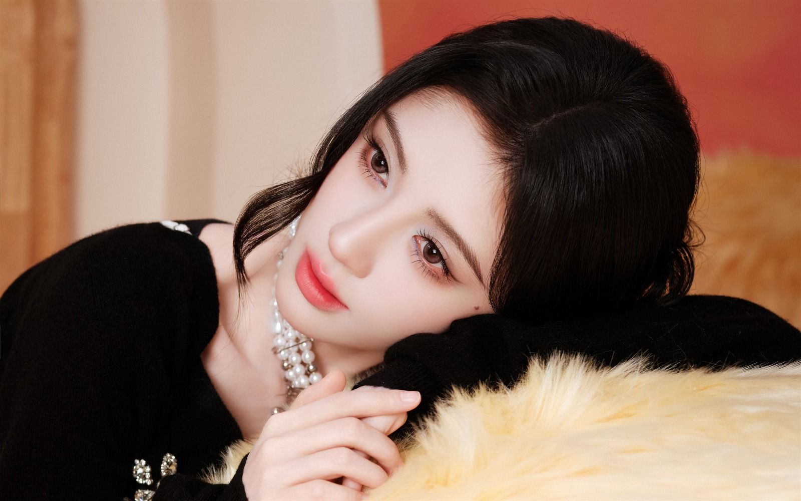亚麻色长发,雄伟的胸部,黑色大衣下,微微漏出一条鲜白色的肌肤。